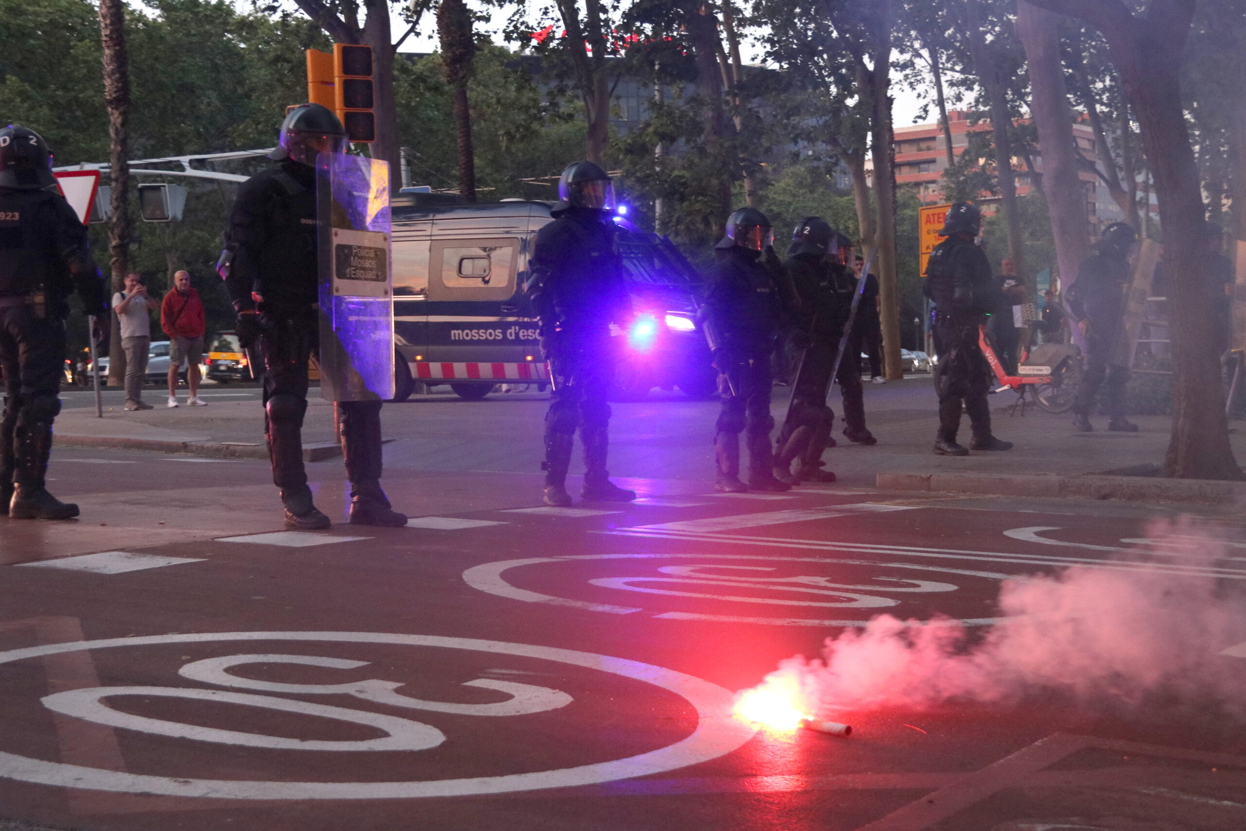 Càrregues i llançaments d’objectes contra la línia policial que protegeix el consolat d’Israel a Barcelona