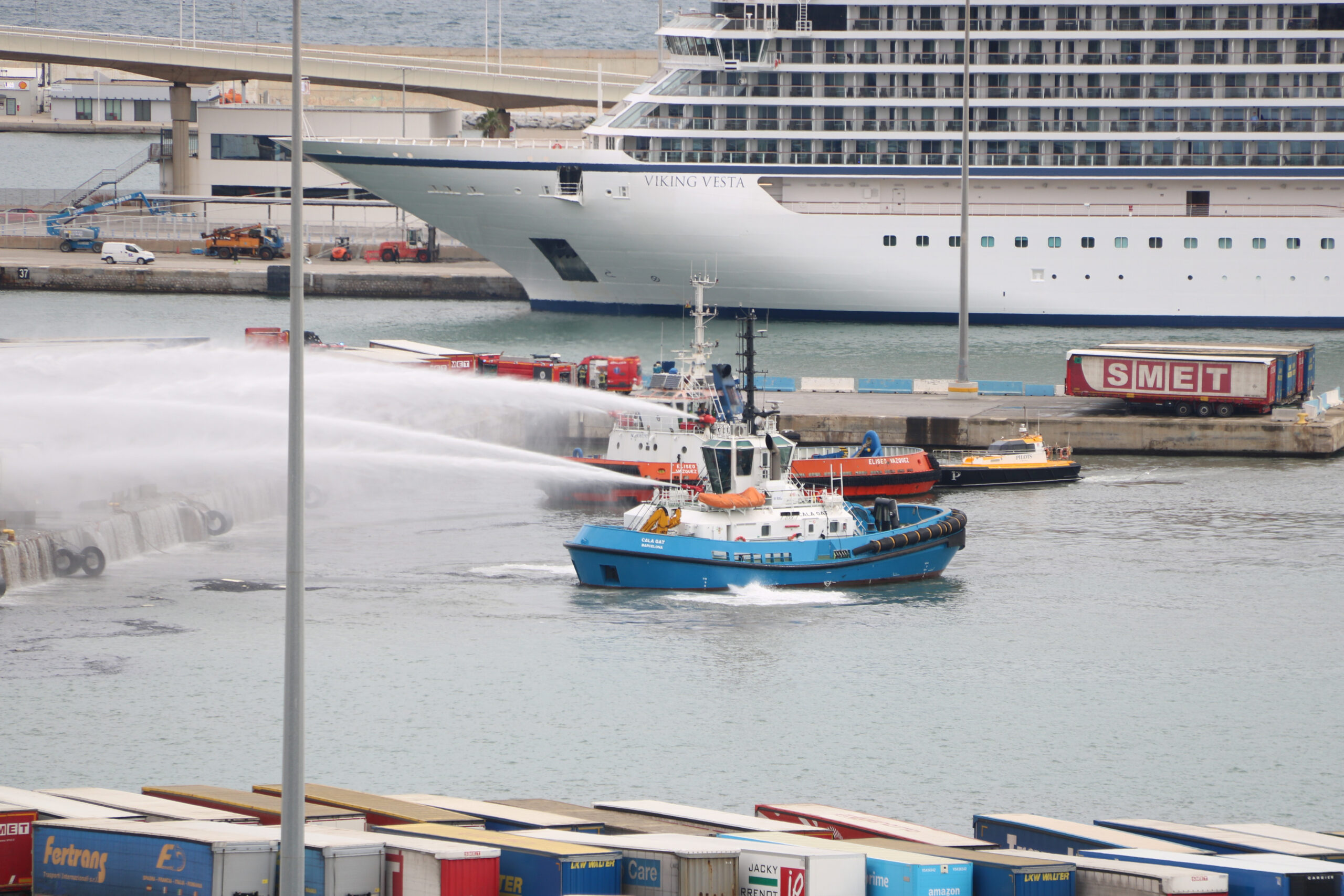 ACN Barcelona – Els Bombers de Barcelona han donat per controlat cap a les quatre de la tarda l’incendi de tres contenidors de mercaderies al Port de Barcelona, a la zona Pont d’Europa, segons han explicat fonts municipals. Els Bombers han rebut l’avís a les 13.17 hores i han desplaçat tres tancs, tres autobombes amb aigua, una ambulància, una autoescala, dos vehicles amb equip de suport i dos vehicles de comandament-. També ha actuat la barca de Bombers de Barcelona, donant suport a l’extinció des de l’aigua. No hi ha persones afectades. Les flames han afectat un total de 20 semiremolcs. Els contenidors contenien mercaderies que no eren perilloses, però s’ha generat un núvol de fum important a la zona de l’entorn de l’incendi.