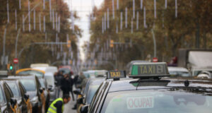 Els taxistes tallen els carrils centrals de la Gran Via per...