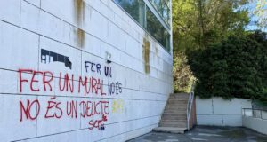 Estudiants de la UAB tornen a pintar el mural gegant esborrat...